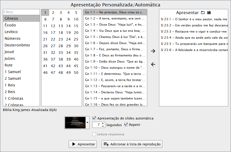 Custom/Automatic PresentationCreate a presentation with specific verses.